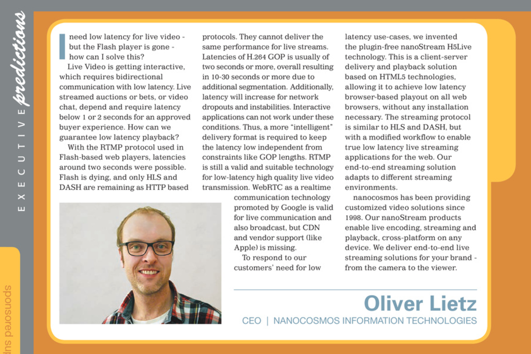 TalkPoint, a PGI company, uses nanoStream H5Live player for their Convey product for low-latency live streaming of webcasts on any browser. nanoStream software enables effective video collaboration in enterprise environments to connect employees at a distance. nanoStream H5Live is a unique live streaming protocol and player for ultra-low-latency playback on any browser, including Safari on...