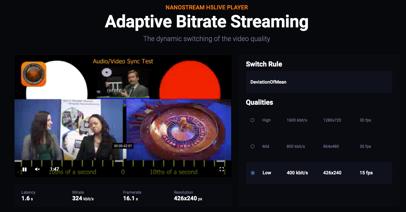 We have released nanoStream H5Live Player 4.8.0. This version introduces a new error code. In case the media element fires an error event without specific error code, the new player error code'3200' with the message 'An unspecific media error occured.' will be passed in the 'onErro' event. In addition, a WebSocket prototype polyfill is removed completely. This finall solves a compatibilty...
