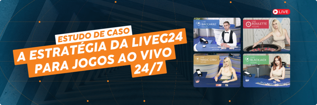 A LiveG24 é uma especialista em jogos de cassino ao vivo e bingo, com estúdios espalhados por toda a Europa (Itália, Malta, Eslovênia, Estônia) e alcance global, incluindo mercados emergentes como Brasil e África.