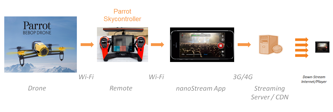 General Setup with Parrot BebopDrone, Skycontroller and nanoStream