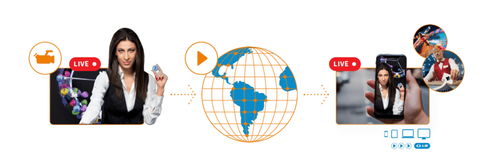 It starts with a simple setup—a dealer at a physical table, either in a studio or land-based casino. Using a single camera feed, our platform enables that real-world scenario to be streamed instantly and reliably to a global audience—on any device, anywhere.