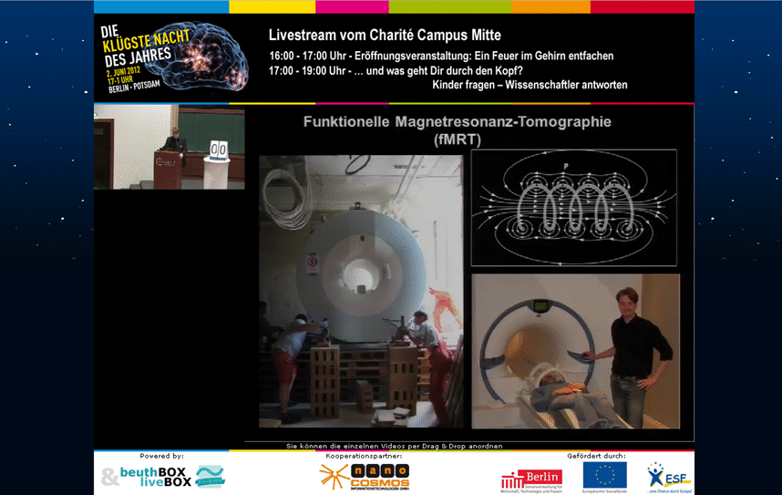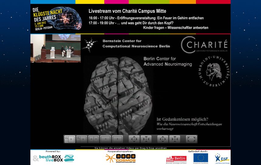 nanocosmos zeigt auf der Langen Nacht der Wissenschaften in Berlin Live Video Streams in Full-HD vom Ausstellungsbereiches der Beuth-Hochschule Berlin sowie der Eröffnungsveranstaltung aus der Charite.