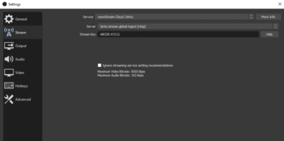 1) Navigate to Settings-> Stream-> Service
