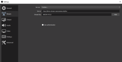 1) Select Settings-> Stream-> Service-> Custom