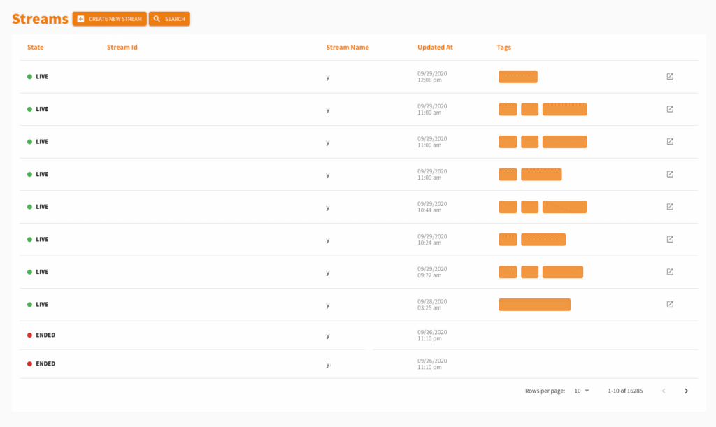 Screenshot of the stream overview that is part of the Cloud Dashboard.
