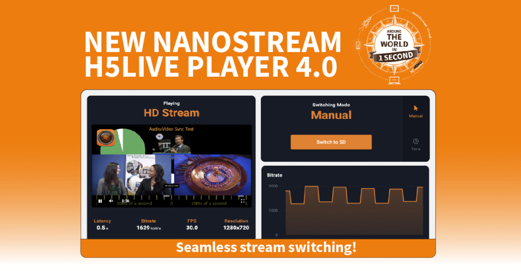 Being that said, we are proud to announce our newest nanoStream H5Live Player version 4.0. Essential part of nanoStream Cloud, nanoStream H5Live Player counts on a unique technology to deliver and playback your live streams around the world in 1 second on any mobile and desktop device, including Safari on iOS.
